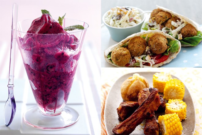 Baked potatoes and corn are delicious wrapped in foil and baked in the barbecue. Otherwise just cook indoors and eat out on the patio.